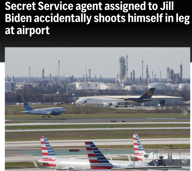 事情发生在费城国际机场。上周五早上8点半刚过,一名负责保护吉尔·拜登的美国特勤局特工,在执行护送任务期间,发生了一起颇为“尴尬”的意外——公务配枪走火,子弹不偏不倚地打在了自己的腿上。