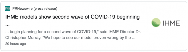 据komonews报道,华盛顿大学卫生计量与评估研究所(IHME)预测,到8月,全国范围内的死亡人数将保持稳定水平,然后在8月下旬开始上升,9月再次上升,而且更为明显,而有些州由于“增强流动性和放松社交疏远,第二波疫情很有可能提早到来。”
