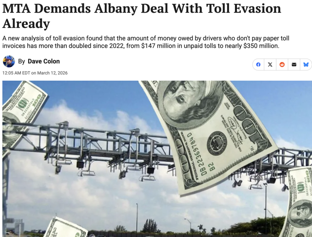 更关键的是,该提案还计划扩大MTA追缴欠费的权限。一旦通行费债务经过法院裁定,MTA将可以像处理其他欠款一样,对违规者的财产或银行账户设立留置权。此外,逃避通行费的行为也可能被定性为“盗窃服务罪”,并禁止违规司机通过将车辆转登记到他人名下来规避责任。