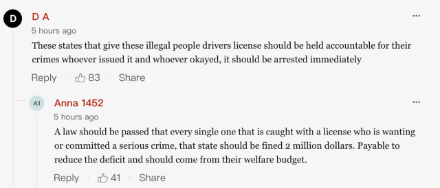 事件曝光后,公众愤怒指向驾照发放的宽松审核。网友批评民主党主政州将“真实身份认证制度”沦为笑话,指责其向未经审查的非法移民“派发证件”,而合法公民却需经历繁琐流程。纳苏县警察局长帕特里克·莱德的表态或许道出核心困境:“我确信那不是他的真名——但谁该为这样的漏洞负责?”