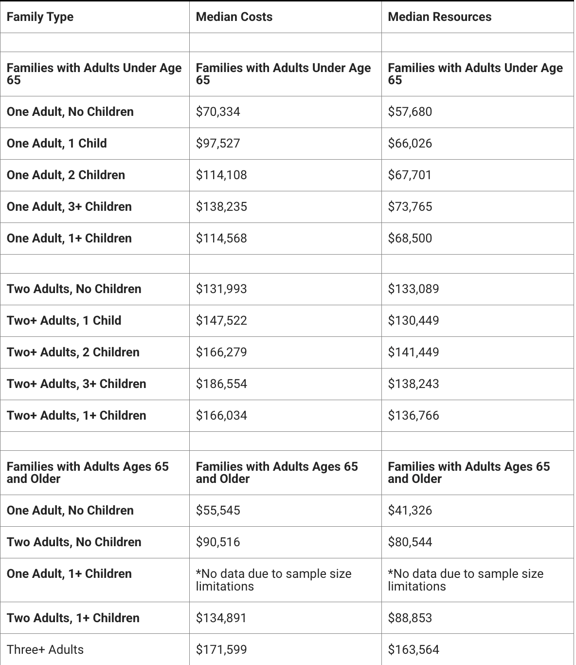 数据显示,这些家庭平均每年的资源缺口高达39,603美元。尤其是有子女的家庭,维持基本生活的年支出约为159,197美元,而实际可用资源仅为124,007美元,差距超过3.5万美元。