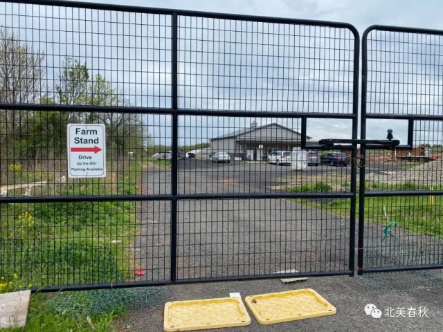 农场的无接触递送做的非常保险,铁丝网隔开,双方先后通过地面的塑料杯传送食品和费用。