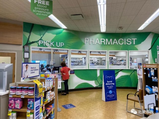 进入药房,商店里有二个戴口罩的工作人员,后面的药房里有3个人,同样带着普通的医用口罩,电话铃声不断。正当我在店内向药房工作人员咨询如何检测新冠病毒时,对外窗口的外面,有一辆红色小跑车前来检测。看到一个工作人通过对讲机,核对姓名等个人信息后,通过传输通道,递送一套检测包给在外面敞开二个车门的小跑车司机。