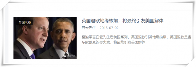 这个号平时经常发的一些文章,比如什么外国要亡了、崩了、疯了之类,都还算是正常操作了。