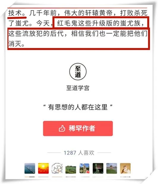 比如消灭外国红毛鬼,这样的极端口号,1287人赞赏:
