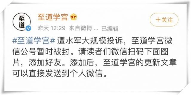 就在《至道学宫》被封后,它依然嚣张,在微博发布公告,称粉丝可添加微信收取文章,对骂他的评论,称都是虫子、水军,一副会回来的样子。