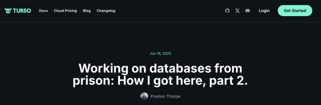 过去六个月,索普一直是数据库公司Turso主导的开源项目“Limbo项目”的高产贡献者,代码质量极高。Turso CEO Glauber Costa很快向他发出工作邀请,这时他才意识到:索普正在服刑。