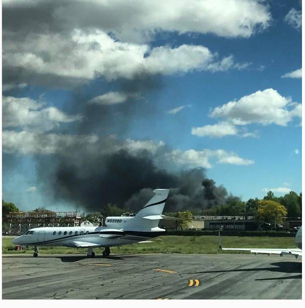 周一下午3点30分,一架里尔喷射式飞机在新泽西Teterboro机场降落时坠毁,两人死亡。