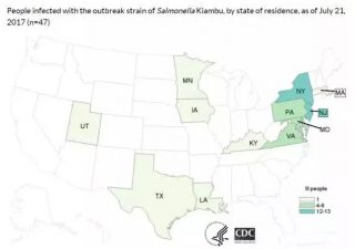 据CNN电视台消息,7月21日(星期五)“美国疾病控制与预防中心”(US centers for Disease Control and Prevention,简称CDC)官员表示,在这47个染病的人当中,12人住院治疗,1人死亡。该名离世病患即为纽约人。官员表示,目前正在调查木瓜供应链的污染源处。