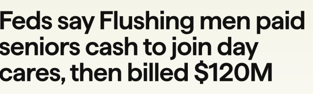 周一,美国司法部公布,一起震动纽约华人社区的成人日托与药房诈骗案正式浮出水面。两名来自皇后区法拉盛的男子,被控通过成人日托中心和药房,诈骗联邦医疗保险(Medicare)和医疗补助(Medicaid)资金高达 1.2 亿美元。