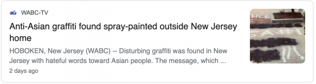 据侨报纽约网报道,新州发现一处令人不安的涂鸦,上面写着仇视亚裔的话语。