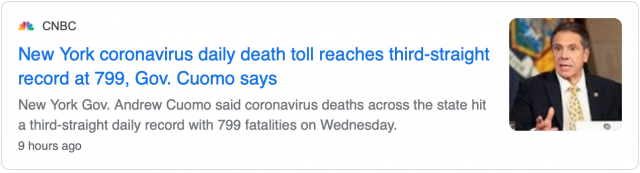 纽约州确诊超16万 单日新增死亡近800 经济影响超9/11