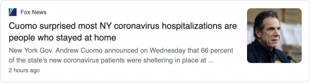 66%纽约新增入院患者一直待在家中 库默:令人震惊