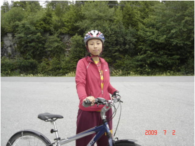 我也是有生以来第一次骑山地车旅行,虽然逞强参加,也有点担心这趟骑车旅游能否坚持下来。记得上一次骑车远行已经近50年过去了,那是在初中时和同学一起在暑假骑自行车从上海市区到松江的佘山游玩。成年以后,自行车只是上下班代步的工具,而且都是不带换档设备的普通自行车。到美国后,出门都是汽车代步,与自行车也是久违了。