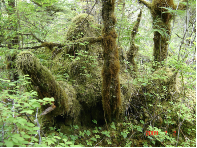 本以为要走山林间崎岖的羊肠小道,实际上路后发现导游带着我们10多名游客走的是靠海边一条车辆稀少的宽阔公路,路面平整,根本不会颠簸。每到一处景点,导游会让我们停下来观赏几分钟,比如采摘野生浆果,看山水瀑布,港湾远眺,观察驻足在松树顶部的白头鹰等。最后,我们来到一处雨林,导游让我们把山地车放在路旁,徒步进入雨林观光。雨林中植物生长茂盛,植被丰富,满眼翠绿,泉水叮咚,如同置身在热带雨林中,让我们忘了是在靠近北极圈的阿拉斯加旅游。