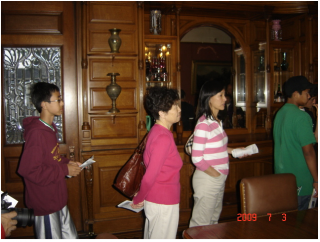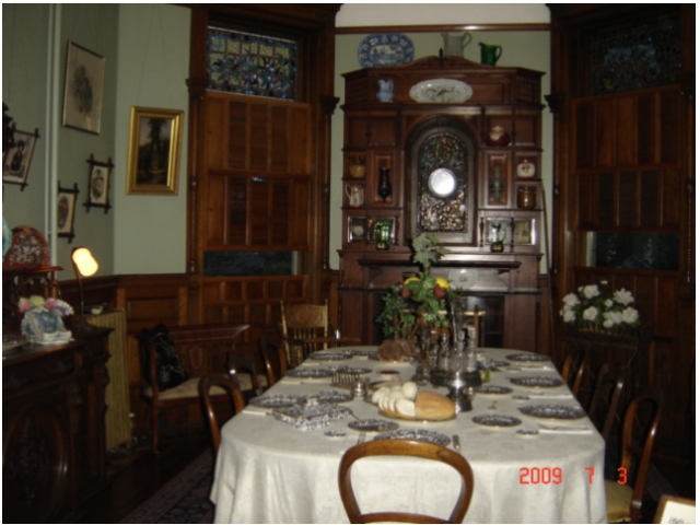 几经周折,这所别墅后来的主人又遭遇破产,把别墅抵押给了银行。这套别墅曾做过军人医院,也做过维克多利学院,直到1979年在当地公众支持下成为博物馆,作为旅游设施向公众开放。室内的家具摆设据说都是收集的原物,系用上等木料制作,造型既古色古香又富丽堂皇。导游说如果现在拿到市场上拍卖,每个椅子都是古董,价值上千。但是也许是晚上参观的缘故,光线暗淡,气氛压抑,尤其是穿着白色连衫裙的女主人背对游客的蜡像更让人感觉不自然。从古堡式别墅出来,一轮明月已经高挂树梢,映衬着古堡冷峻的轮廓,显得阴森森的,给人带来阵阵寒意。