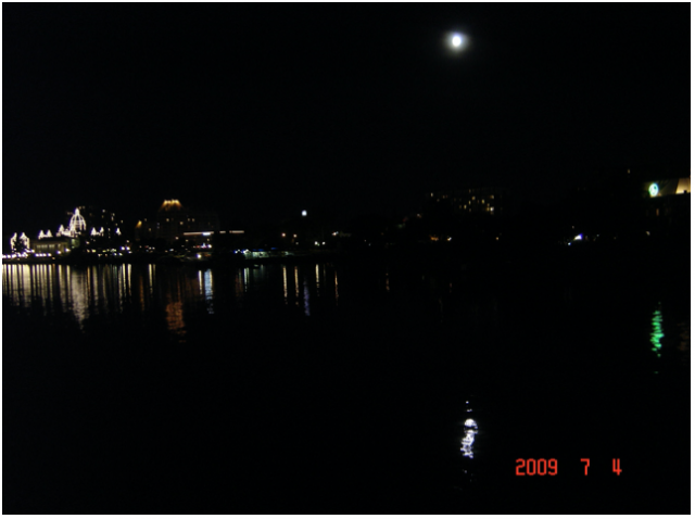 大巴士再度穿行在市区的大街时,华灯初上,车水马龙,显然比阿拉斯加的任何城市都要繁华。车还经过了华人居住密集的唐人街,映入眼帘的是那熟悉的牌坊和商店幌子招牌上的方块字,让我们再次感叹一声当年我们的祖先忍辱负重、远渡重洋、四海为家,寄居他乡仍不敢忘祖数典。司机把车开到一个海湾,我们隔着海湾观看灯火通明的市中心景色,天上的一轮姣月和水面上如同银盘的倒影遥相辉映,夜幕下海湾边上的绿树丛中夜来香和栀子花发出丝丝幽香,微风轻拂,让游客陶醉在舒适和宁静中。