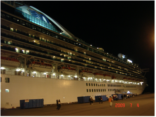 图36 灯火辉映下的黄金公主号邮轮