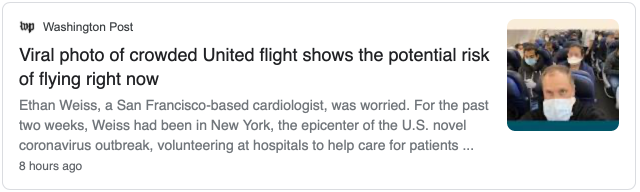 埃森·魏斯(Ethan Weiss)是来纽约抗疫的一名心脏科医生,他周六发布的一张照片甚为惊人:美联航(United)每个座位都坐满了人。
