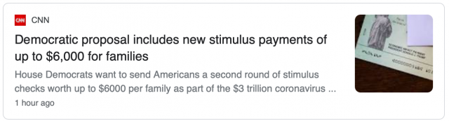 然而,《CARES法案》最具有决定性的环节是3000亿美元,用于每个人$1200的纾困金。