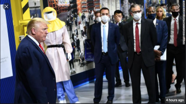 昨天总统参观了密西根州福特的工厂,但是在媒体面前没有戴口罩,但是据知情人士表示,总统在参观时候是有戴口罩的,但是总统拒绝在媒体面前戴口罩。