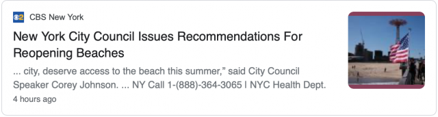 纽约市议会在本周六(5月23日)发布了一系列建议和指导方针,要求海滩安全重新开放。