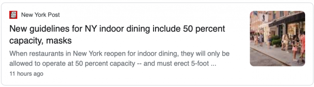 纽约的餐馆只能以50%的容量营业,员工和站立的顾客必须戴口罩。
