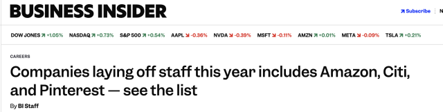 《商业内幕》去年已追踪了约65家大型公司的裁员情况,包括亚马逊、Meta、派拉蒙和星巴克。进入2026年,这份名单还在不断拉长。