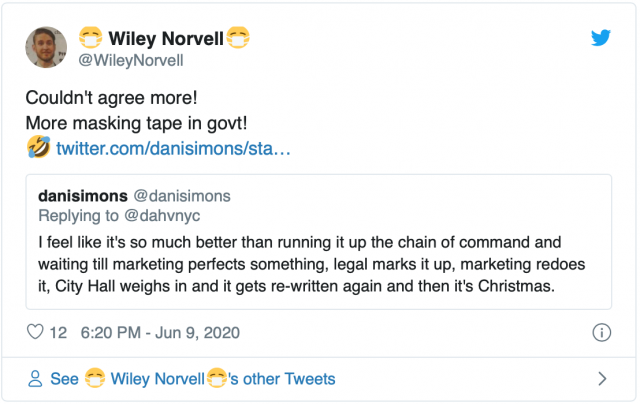 纽约前交通局长丹妮·西蒙斯(Dani Simons)赞成用这种简单的方法保持社交距离。她在推特上表示,虽然看起来很不专业。但如果用专业的方法,不仅程序复杂,而且要花很多时间,速度很慢,也许到圣诞节还做不出来。市长信息联络总监Wiley Norvell对此表示赞同。