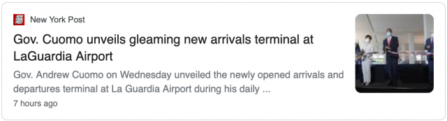 科顿称,他承诺拉瓜迪亚机场建成后将会有72个新大门,6个新大厅,9.2英里的新道路和新设计的路边通道。