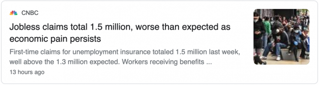 经济重启未重振?上周仍有150万人失业