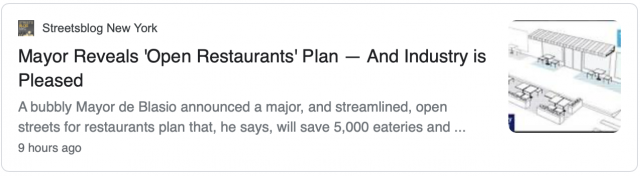 纽约市公布"开放式餐厅"计划 游乐场下周一开放
