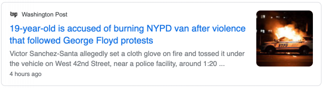 据纽约邮报报道,上周一(6月8日)上午,皇后区19岁男子桑切斯-桑塔(Victor Sanchez-Santa),驾车来到曼哈顿中城(Midtown Manhattan),西42街(West 42nd Street)和11大道(11th Avenue)路口附近,停好车后下车,来到一辆停着的警车旁,随即点燃一个棉手套,扔在警车底盘下面,企图点燃警车,还好当时警车内没有警员。