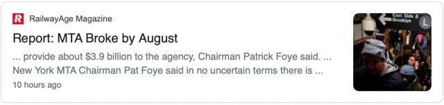 据AMNY报道,大都会运输署主席帕特·福耶(Pat Foye)在6月22日周一早上表示,即使是最近的客流量增加,也不足以提供足够的资金,使他们撑过7月。