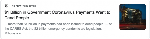 关于死者获得补助金的报道最早在4月份浮出水面,当时美国国税局(IRS)开始在纳税人的银行帐户中直接存入最高1200美元的款项。这笔款项是根据新的2.2万亿美元的经济刺激计划(称为CARES法案)授权的,旨在帮助经济从新冠病毒大流行的灾难性影响中复苏。