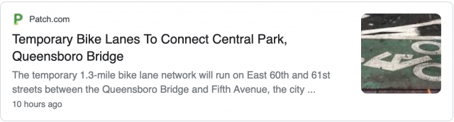 纽约市长白思豪(Bill de Blasio)为应对新冠病毒大流行,计划开放100英里长的纽约市街道,增加行人和自行车的社交距离,而东60街和东61街是该计划的一部分。