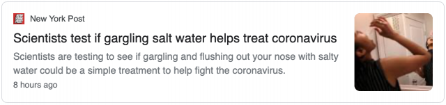 【侨报纽约网报道】根据英国科学家的说法,盐水有可能治疗新冠轻症。