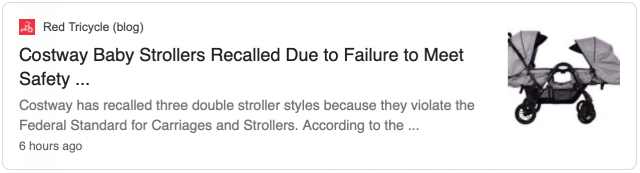 据1010wins报道,有三种不同型号的Costway婴儿车被召回,大约16000辆婴儿车受到影响。