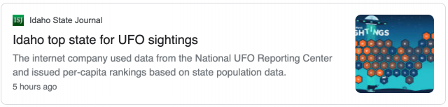 但是这些不明物体正避开纽约。根据卫星互联网对国家不明飞行物报告中心数据的分析,从去年1月到今年6月,纽约州只报告了310起,平均每10万人有1.59起。全国只有路易斯安那州和得克萨斯州比纽约州更少。与人口总数相比,纽约州是全美目击不明飞行物次数最低的州之一。