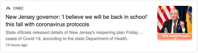 如果新泽西州夏季不会出现疫情反弹,新泽西州政府将建议,秋季学期时所有学区采取混合方式为学生们提供课程,包括远程课程。