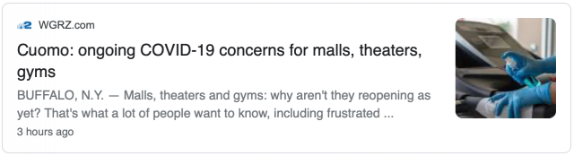 纽约还未准备重开体育馆、剧院和购物中心