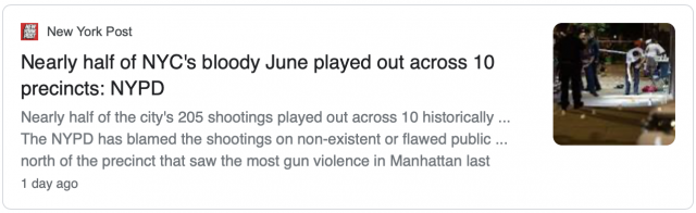 据报道,今年6月是纽约市自1996年以来最血腥的一个月,39人在枪击中丧生,至少270人受伤。