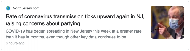 据1010wins报道,周四,新泽西州新冠病毒的传播率从1.0上升到1.11,墨菲在周五下午的新闻发布会上说,“这意味着每新增一个阳性病例,就会导致增加另一个阳性病例。”