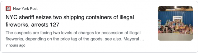 纽约市政府对烟花走私的执法是从6月15日之后悄悄展开的,从目前的执法结果来看,的确是从源头上遏制了烟花进入纽约市。