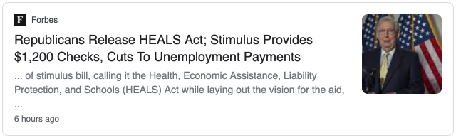 美国中文网综合报道,参议院多数党领袖麦康奈尔发布了共和党人提出的第二轮刺激计划,称其为HEALS法案 ,同时为该法案提出了愿景。