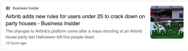 去年11月,在加州奥林达的一个Airbnb租赁屋内举办了一场未经授权的聚会,导致五人被枪杀,此后Airbnb开始加大力度禁止“派对屋”。