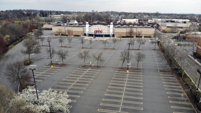 4月5日,新泽西州克利夫顿(Clifton)一家AMC影院的停车场空空荡荡。(图片来源:美联社)