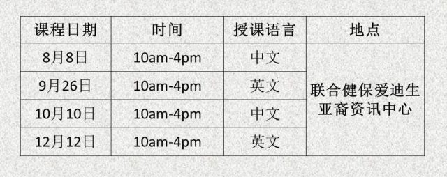 讲座及上课地点: 联合健保爱迪生亚裔资讯中心