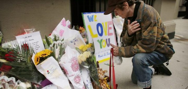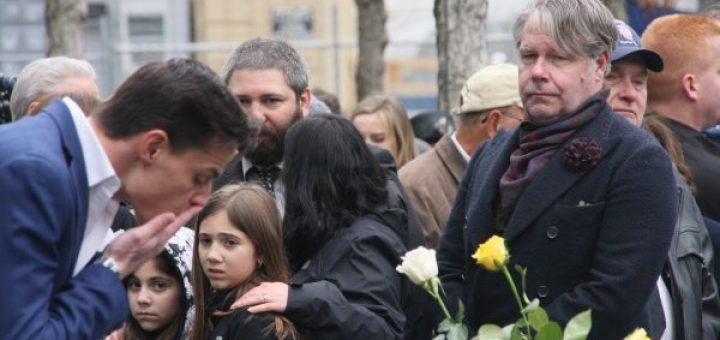 现场肃穆宁静 ,受害家属及民众聚9·11遗址前 放置鲜花卡片悼念 ,悼念逝去的亲人,愿逝者安息!