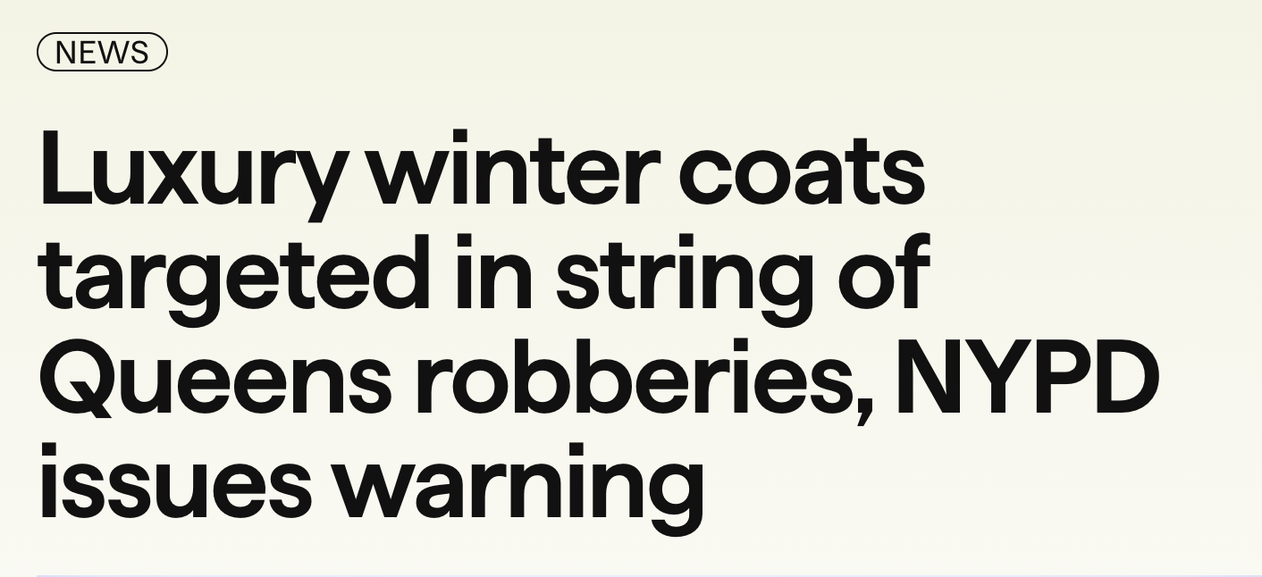 这个在华人圈颇受欢迎的高端冬装品牌,如今成了纽约街头劫匪的目标。